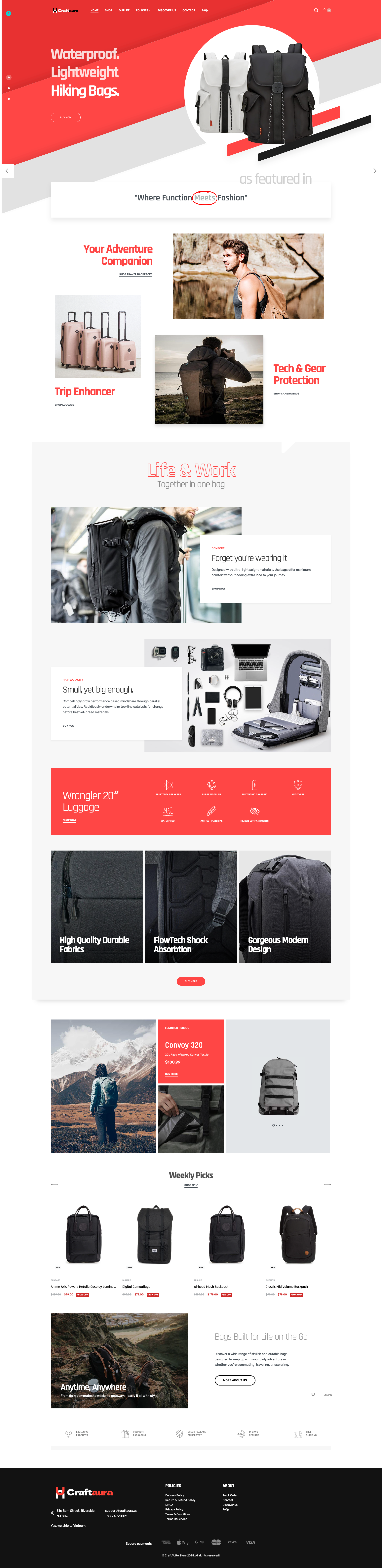 CraftAura's website radiates contemporary elegance, blending minimalist design with rich textures that echo the artistry of their premium bags and luggage. The harmonious color palette, striking visuals, and seamless navigation create an experience as stylish and functional as the products themselves.